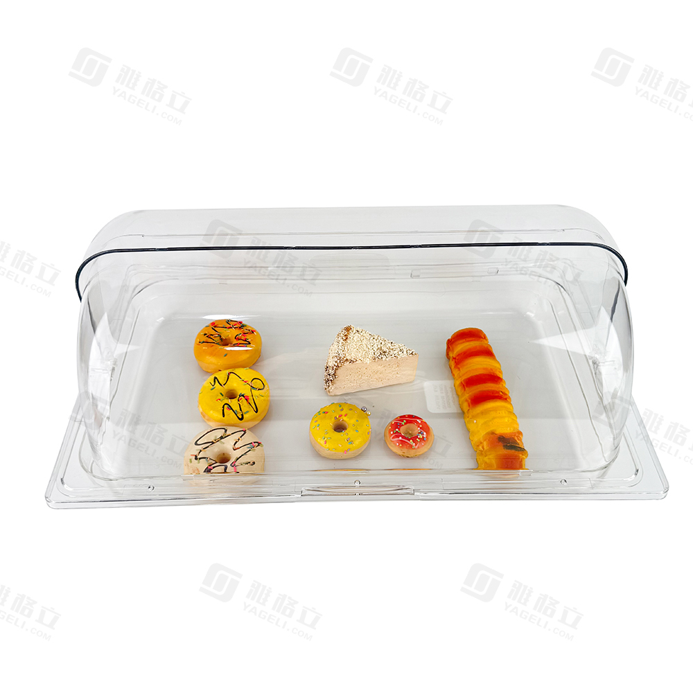 مصنوع من أكريليك شفاف عالي الجودة، ويتميز بغطاء قابل للإزالة يوفر حماية صحية من الغبار، مع إمكانية رؤية واضحة للأطعمة بداخله. هيكله المتين يضمن المتانة، وتصميمه الواسع يتسع للعديد من أصناف الطعام، مما يجعله خيارًا مثاليًا للحفاظ على الطعام طازجًا وجذابًا أثناء التقديم أو العرض.
