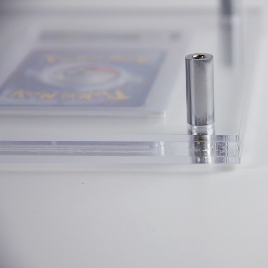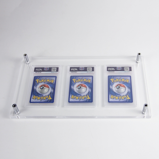 تتمثل الوظيفة الأساسية لهذا الحامل في عرض ثلاث شرائح من بطاقات لعبة الورق المصنفة: فهو يثبت كل شريحة بإحكام في مكانها المخصص بزاوية رؤية مثالية، مما يُبرز تصميم البطاقة ومعلومات تصنيفها (مثل ملصقات PSA) ليسهل تقديرها. كما أنه يُعد أداة تنظيمية، حيث يحافظ على ترتيب الشرائح المتعددة بشكل أنيق (بدلاً من تكديسها أو تشتيتها) لحمايتها من الخدوش أو التلف، مع تحسين المظهر العام لمجموعة صغيرة منتقاة لعرضها شخصيًا أو في واجهات متاجر التجزئة.