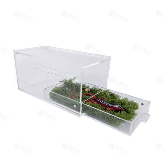 مصنوع من الأكريليك الشفاف المتين، يوفر هذا الناقل رؤية كاملة لمراقبة سلوك الزواحف؛ تصميمه على شكل درج يتيح سهولة التنظيف ووصول الحيوانات الأليفة، كما تضمن فتحات التهوية دوران الهواء المناسب - مما يجعله خيارًا عمليًا وآمنًا لمالكي الزواحف.