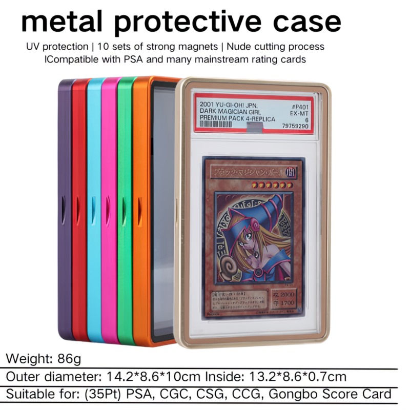 يتميز بإطار من الألومنيوم المتين وإغلاق مغناطيسي آمن، مما يحافظ على سلامة البطاقات أثناء التخزين أو الشحن أو العرض. تضمن طبقة الحماية من الأشعة فوق البنفسجية ذلك.