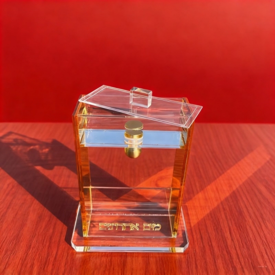 مجموعة "مايم أخرونيم" عصرية مصنوعة من مادة الأكريليك الشفافة، مصممة للاستخدام في الطقوس اليهودية وأسواق الهدايا اليهودية. مثالية لتجار الجملة، وبرامج العلامات التجارية، ومشاريع العلامات التجارية الخاصة.