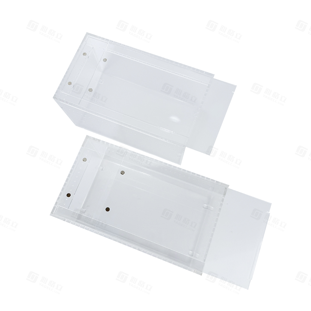 مصنوع من أكريليك عالي الشفافية ومقاوم للكسر، يتميز بمقاومة للأشعة فوق البنفسجية بنسبة 97%، مما يمنع اصفراره ويحافظ على شفافيته على المدى الطويل. يتيح تصميمه القابل للتكديس الاستفادة القصوى من مساحة الرفوف أو الحوامل للاستخدام التجاري، بينما تضمن فتحات التهوية تدفقًا مستمرًا للهواء. كما أن تركيبه بدون أدوات وحوافه الملساء تسهل عملية التنظيف وإدارة المخزون في العمليات التجارية الكبيرة.